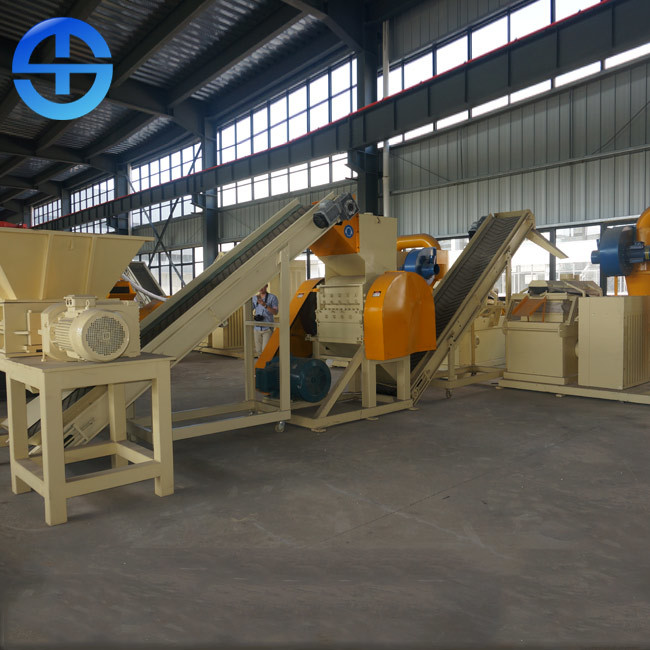 Through the first crusher, the equipment breaks the bulk material into 5-10cm size. After conveying to the crusher for secondary crushing, the crushed material is 10-15mm in size. Through the screening of magnetic separator, the magnetic material such as iron is separated from the crushed material. After the separation of copper and aluminium by vibration separator, copper, iron, aluminium dust and other substances are eventually separated.