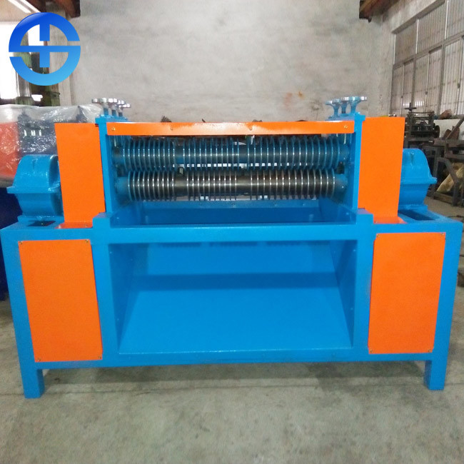 Radiator copper and aluminum stripping machine is used to strip the scrap radiator for recycling copper and aluminum. There are three kinds of blade center distance: 19mm, 21mm and 25mm; that is to say it can strip the radiator whose copper tube center distance is 19mm, 21mm or 25mm. Before processed, the radiators shall be cut with a band saw into pieces of certain width. It can separate one layer or two layers radiators. When radiators are more than two layers, it will be cut into one layer or two layers by band saw machine.