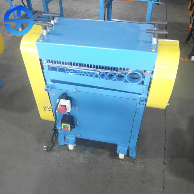 Copper cable stripper applies to various types of electric wires and cables, including copper wires, aluminum wires, steel wires etc. Moreover, it has double blades and double rollers, six feeding hole, and it can strip max. 50mm cables.