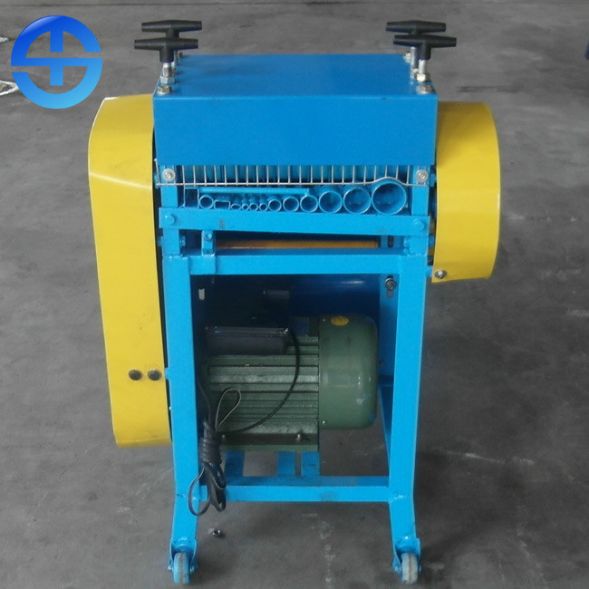 The model 005 copper wire stripper is suitable for 1.5-42mm cables. It has double roller and double blade, and five feeding holes. Can peel dual-core cables. It is widely used in small industry or home recycle.