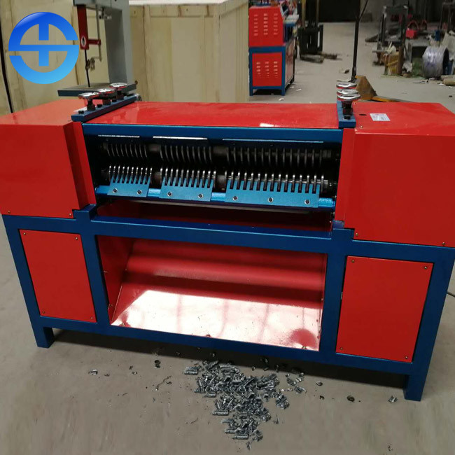 Radiator stripper machine is designed to separate the scrap radiator for recycling copper and aluminum with high efficiency and stable performance. It can strip the radiator whose copper tube center distance is 19mm, 21mm or 25mm. Before processed, the radiators shall be cut with a band saw into pieces of certain width. It can separate one layer or two layers radiators. When radiators are more than two layers, it will be cut into one layer or two layers by band saw machine.